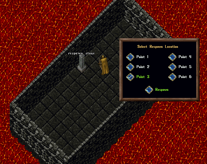 - Once 20 seconds have passed since their death, they may use a Respawn Stone and select one of six Respawn Locations