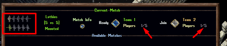 - Matches will only start if all teams are full of players and each player is marked as "Ready" using the Ready button in the match listing