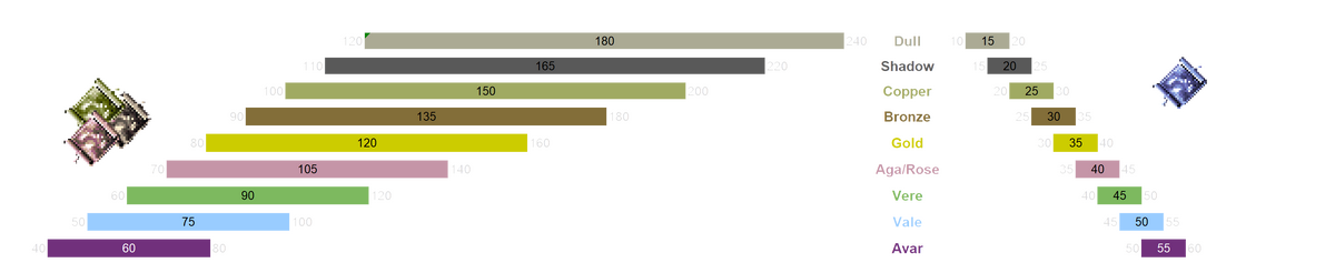 - The hue of the rare item will correspond to the specific resource of the map used; players harvesting from Verite Ore Maps/Verewood Lumber Maps/Verehide Skinning maps will potentially get green items (labeled as Verite) whereas players harvesting from Copper/Copperwood/Copperhide maps will get tan-colored maps (labeled as Copper)